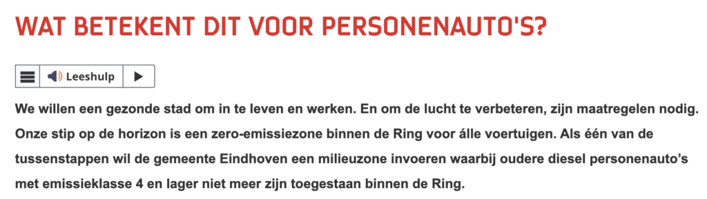 Deurne verzint het autobeleid niet zelf. In 2024 wilde Eindhoven in 2030 al een geheel autovrij zone binnen de ring. De streefdatum over 4 jaar is inmiddels losgelaten. Het doel is hetzelfde gebleven. Zoals ook blijkt uit de onderstaande screenshot van de gemeentelijke website eindhoven.nl