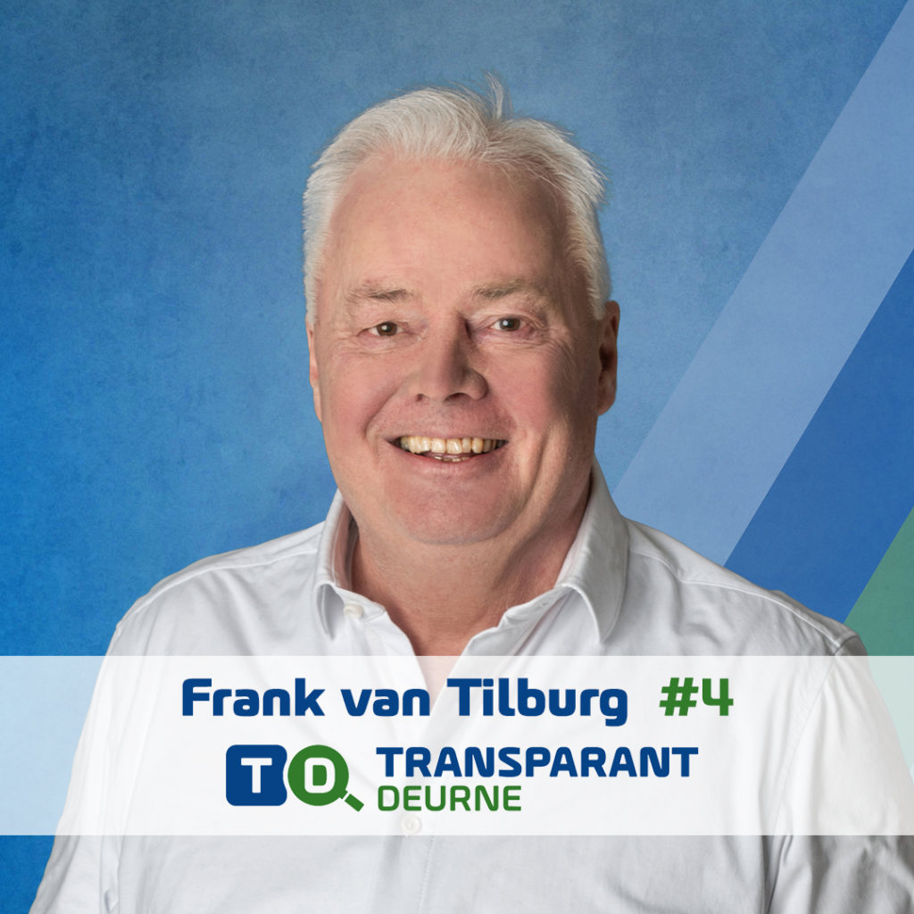 Al 12 jaar is Frank van Tilburg een vertrouwd en scherp geluid in de gemeenteraad van Deurne. Hij staat voor duidelijkheid, degelijkheid en een bestuur dat inwoners serieus neemt. Vanuit die ervaring weet hij hoe het gemeentehuis werkt, maar vooral ook waar het beter moet.